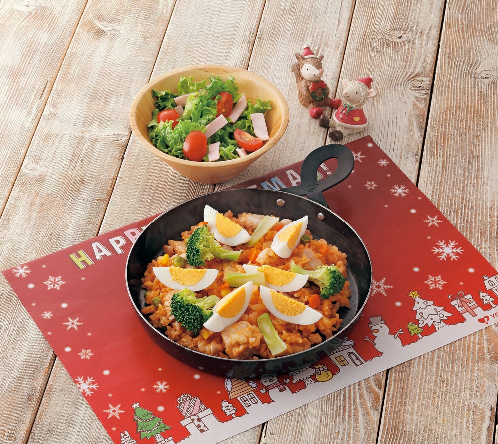 メニューブック中面のヨシケイオリジナルランチョンマットを切り取り、料理を並べることで、よりクリスマス