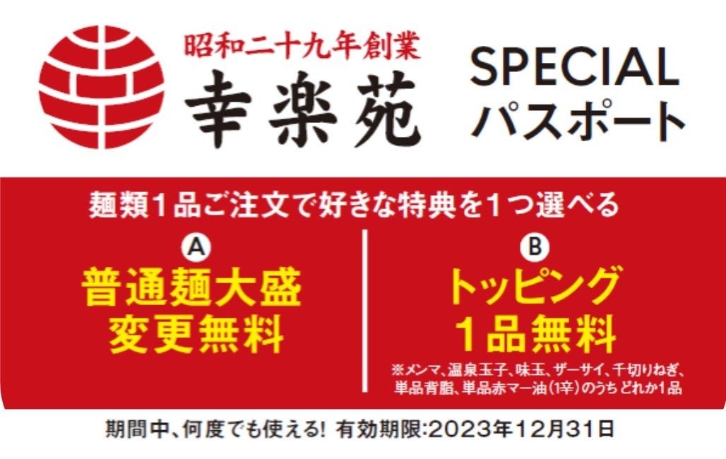 本誌限定付録 :特典A 普通麺 大盛 変更無料