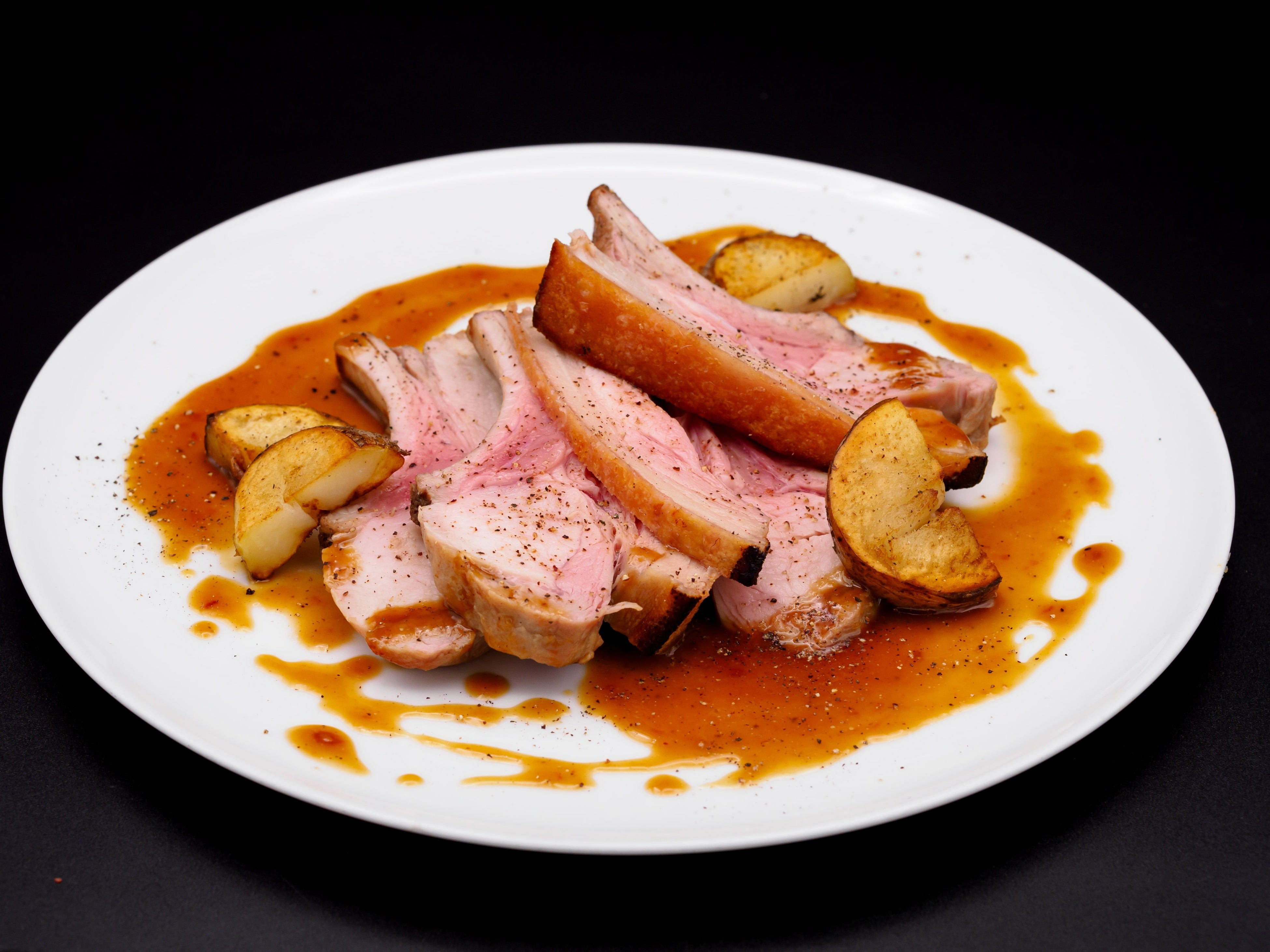 仔豚肉を噛みごたえも残しつつ、柔らかくローストいたしました。