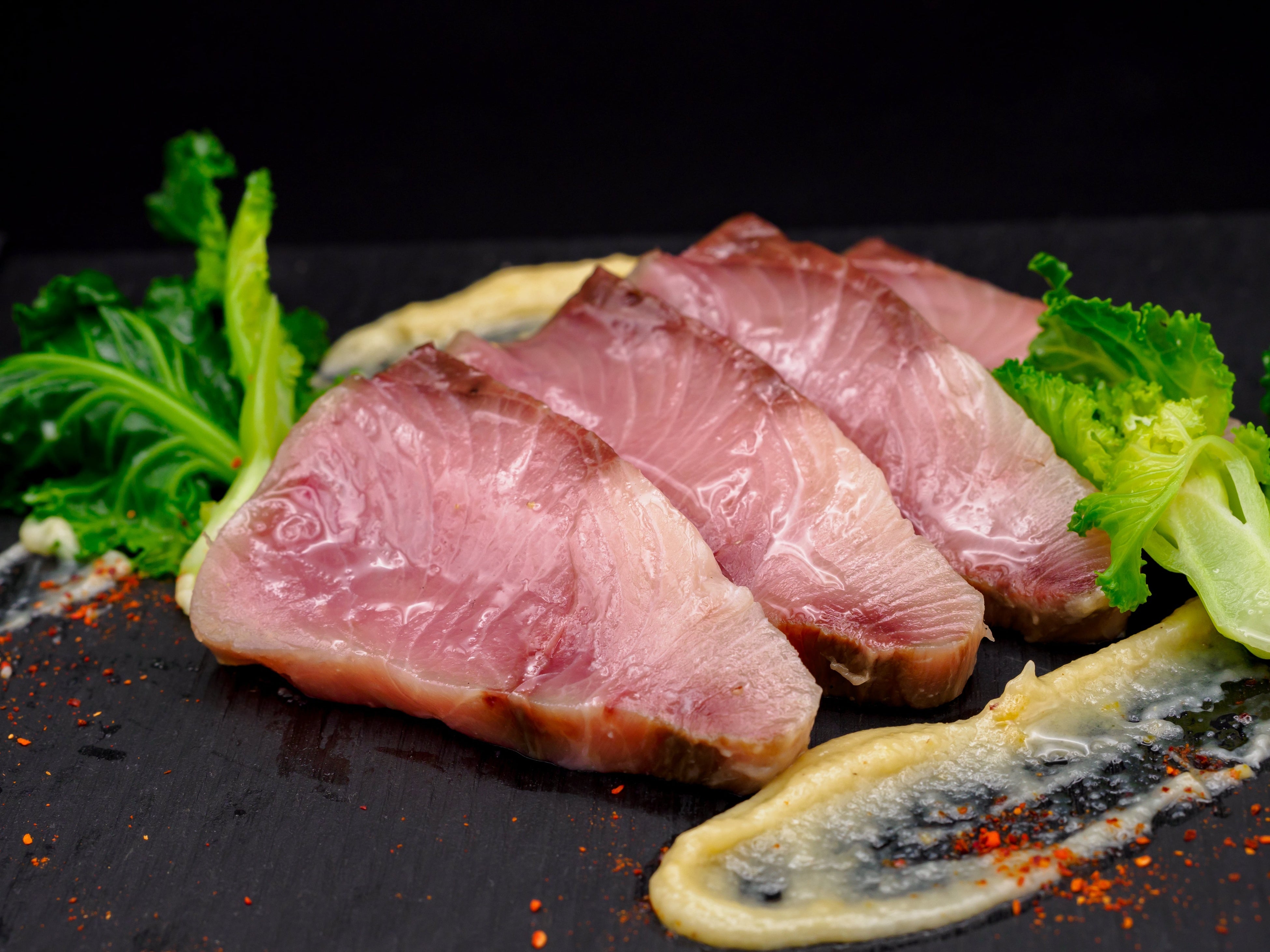 濃厚な味わいの寒ブリを甘酸っぱいソースで、さっぱりとお召し上がりください。