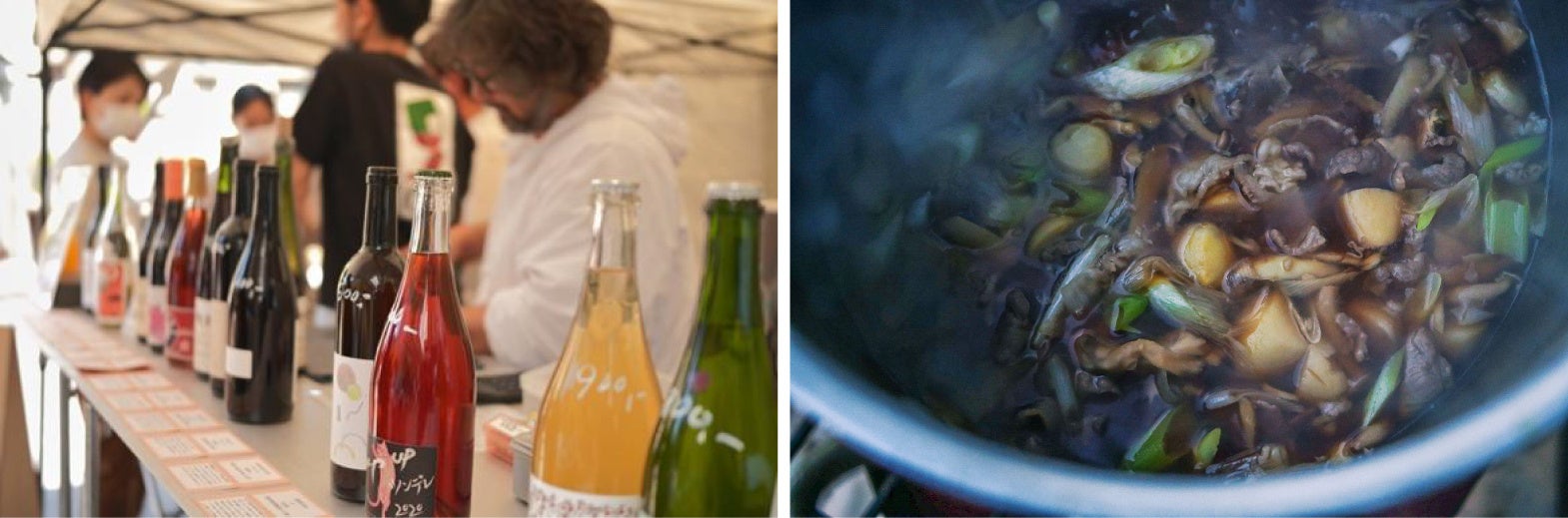 農薬や化学肥料不使用の野菜や花の生産者に加え、世田谷からは奥沢・自由が丘の人気ロースタリーカフェ「ONIBUS COFFEE」や、三軒茶屋に本店を構える熟成チーズの専門店「LAMMAS」が、そして他地域からは日本のナチュラルワインをセレクトする「KIKI WINE CLUB」が出店。さらに今回は、新年・日本の食文化が交差する三軒茶屋として各地の”蔵”が集まる。日本酒銘柄「にいだしぜんしゅ」を醸す福島の仁井田本家、愛媛県「巽醤油」を醸す梶田商店、愛知県「三河みりん」を醸す角谷文治郎商店、福岡県「庄分酢」。最高クラスの日本の発酵醸造調味料を素材として味わえつつ、それらを山形県のビストロ「プルピエ」が山形郷土料理の芋煮に、同県のブックカフェ「つるをカリーヒルズ」が地鶏を用いた照り焼きチキンバーガーにし、提供予定です。