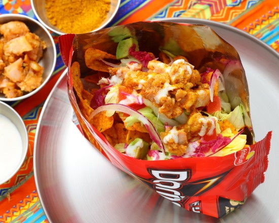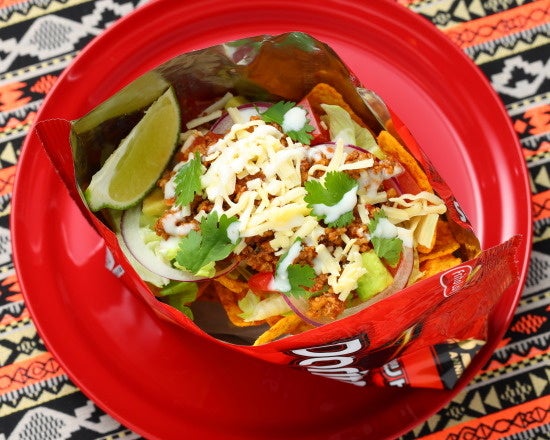 レタス、トマト、アボカド、赤タマネギなど色とりどりの野菜に、タコミート、チーズを組み合わせ、サルサとヨーグルトソースで味付けした、メキシコでも馴染み深い味わいのスタンダードドリロコス。