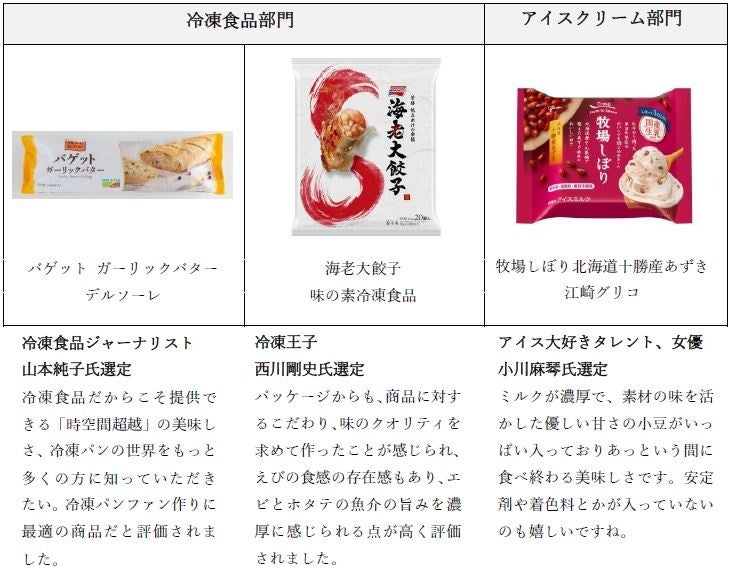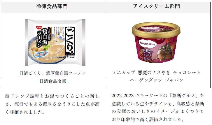 所在地:東京都品川区、代表取締役社長:佐々木淳一 は、 202 2 年 12 月1 2 日(月 )に開催した 消費者キャンペーン『 第 10 回フローズン・アワード表彰式 』において、以下のとおり受賞商品を発表しました。各部門の受賞商品は一般消費者のWeb投票により決定し、総投票件数は2,660,583 票を集めました。過去最高を記録した前年には及ばなかったものの 、動画閲覧数が約 349 万回と過去最高となり、平均視聴時間も前年比 130.1% となるなど、より多くの方々に商品の価値が届けられた効果も見られました。