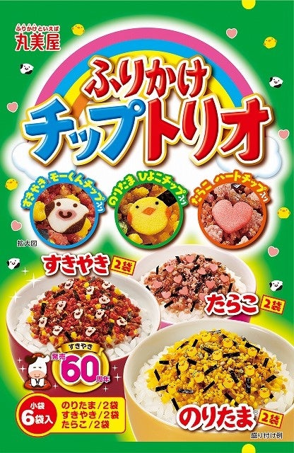 かわいいチップが入った「のりたま」「すきやき」「たらこ」のふりかけ詰め合わせで、おいしさとふりかける楽しさを提案し、市場を盛り上げます。