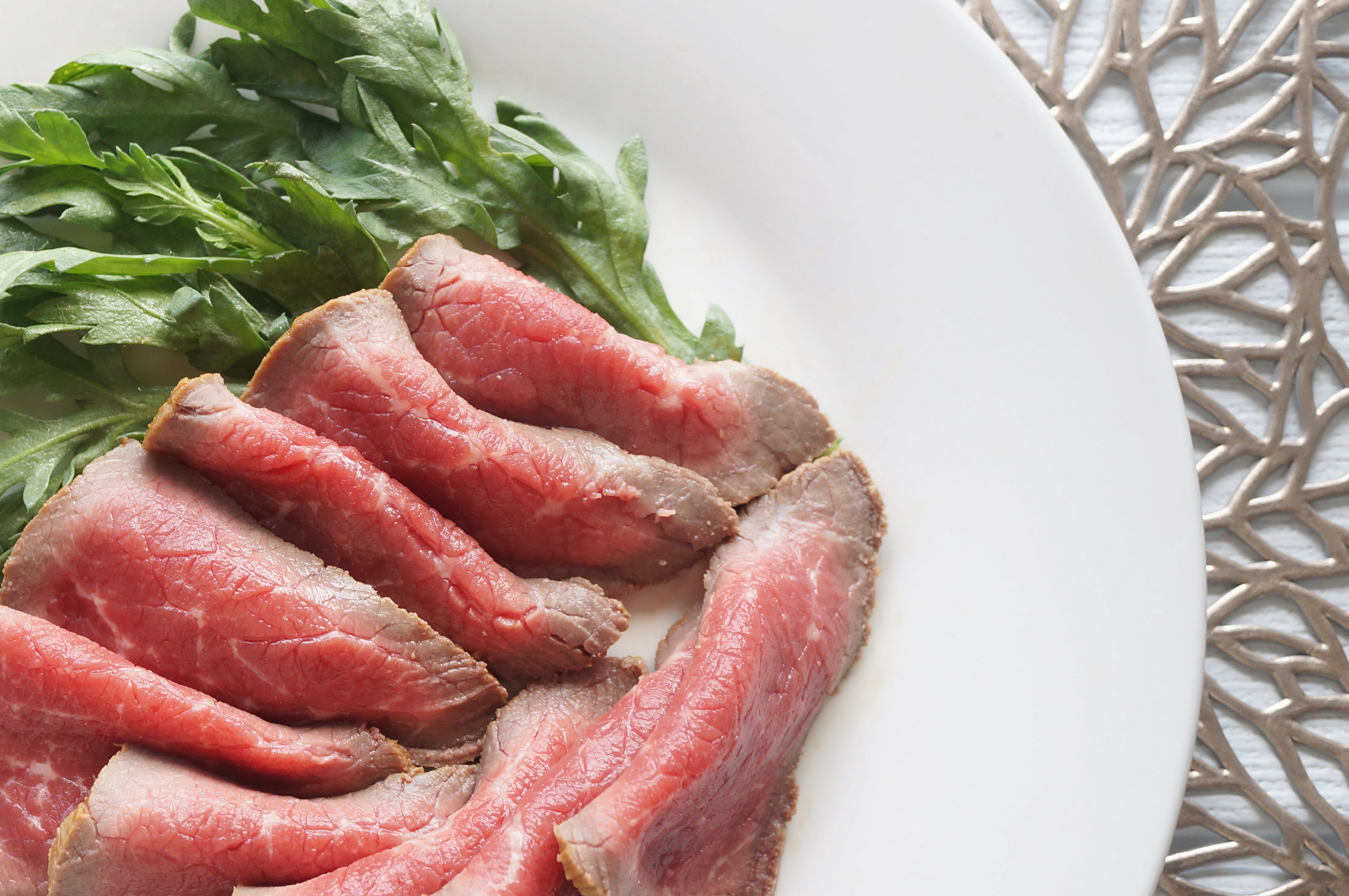 黒毛和牛のモモ肉を使った自家製ローストビーフ!ソース付き。