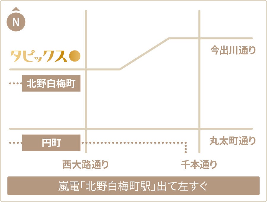 (嵐山電鉄 北野白梅町駅から徒歩1分、北野天満宮から徒歩5分)