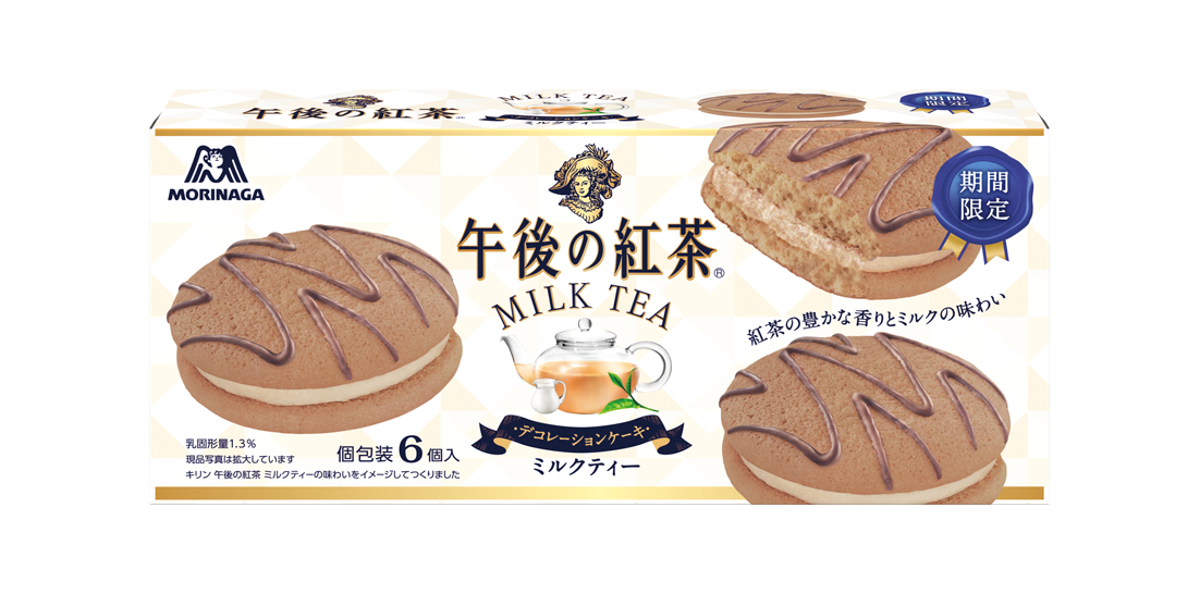 紅茶の豊かな香りとミルクの濃厚な味わいが特長の「午後の紅茶 ミルクティー」をイメージしたクリームをケーキでサンドし、チョコレートでデコレーションしました。