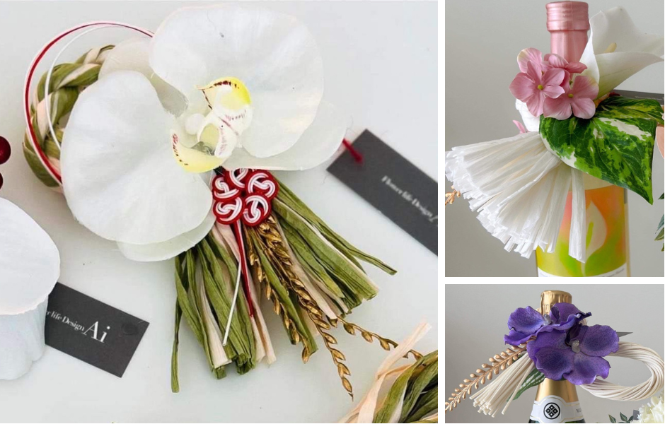 今回、皆様により良い新年を日本酒と共に迎えて頂きたいという想いから、水芭蕉公認ミューズの一人でありフラワーアーティストの宮平亜矢子氏に、縁起の良い「しめ縄」を伝統的な技術を使いながら現代の生活を彩る「日本酒用ボトルチャーム」として考案頂きました。