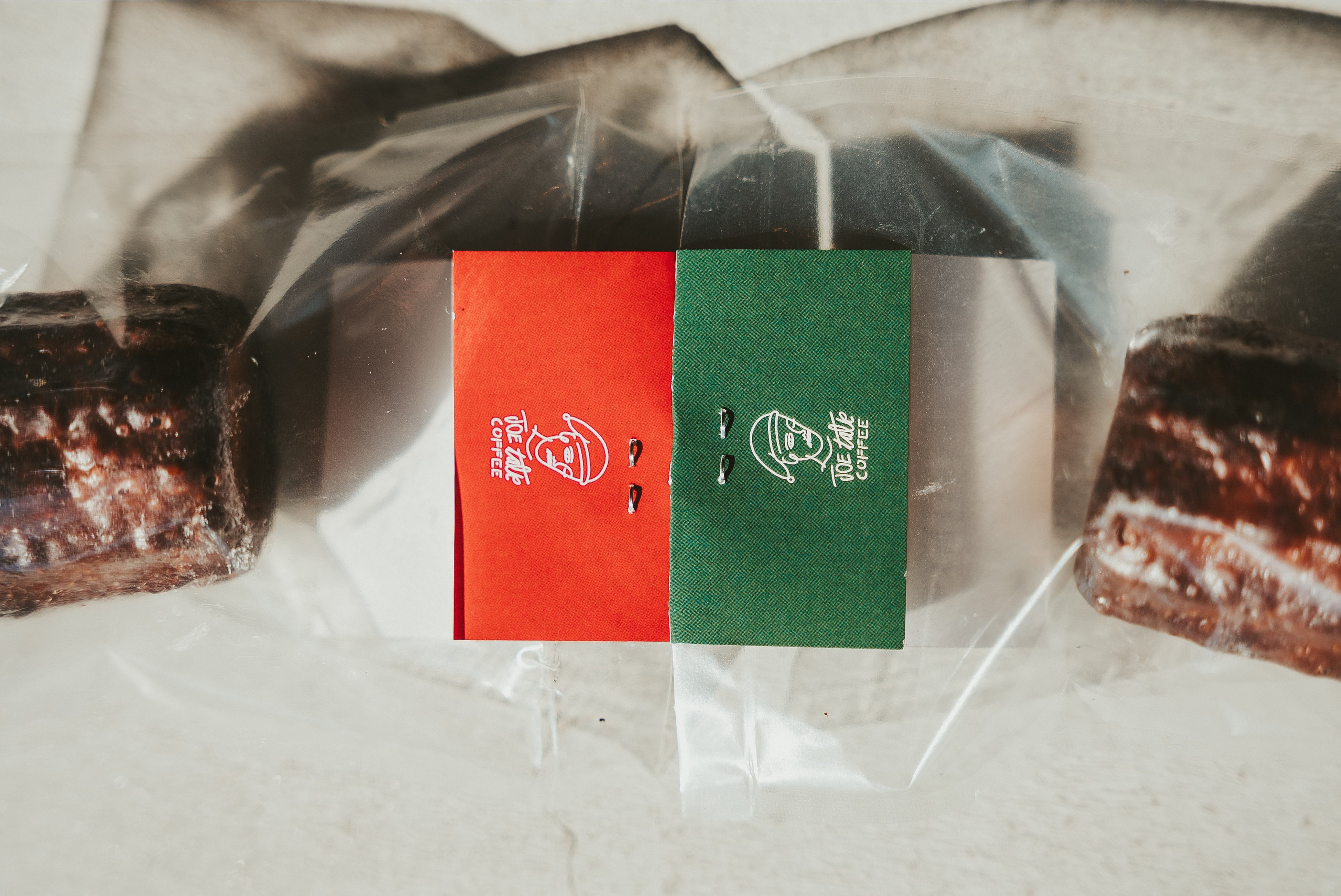 タグはレッドとグリーンの2色で、表には「Merry Christmas」の文字、裏にはサンタクロースの帽子を被ったJOE TALK COFFEEのロゴをプリントしています。裏面のロゴはイラストレーターのnorahi(ノラヒ)氏 (https://www.instagram.com/norahi/) にデザインしていただきました。メッセージカードは裏面に自由にメッセージを記入できる仕様になっており、クリスマスシーズンのプレゼントとしてもおすすめです。