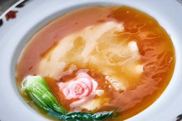 中国北部に位置する北京料理はしっかりとした濃いめの味付けが多いことからメリハリの効いた味付けに仕上げたコース料理です。“ふかひれ姿煮 花百合根添え”は食べ応えのあるサイズのふかひれをしっかりと味わえる幸せが溢れる一皿です。“国産黒毛和牛とパパイヤ 黒酢炒め”は下味をしっかり入れて炒め方にこだわり、仕上げます。やわらかな肉質と酸味のある味付けをお楽しみください。“ロブスターテールと白菜 クリーム煮”はお団子状にしたロブスターの食感と香りを楽しめる逸品。料理長 緑川のどなたでもお召し上がりいただけるようバランス良く仕上げた全8品のおもてなしを心ゆくまでご堪能ください。