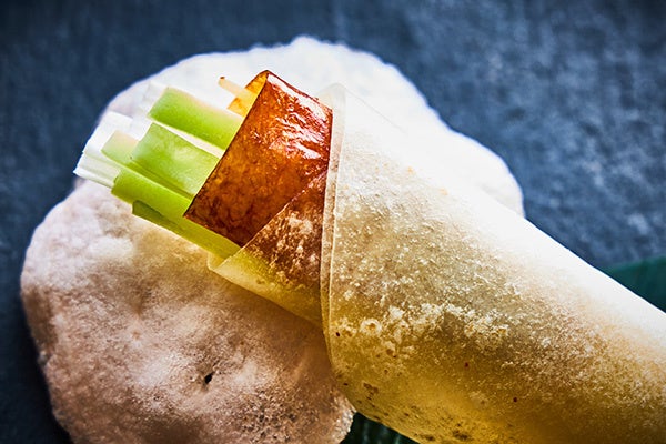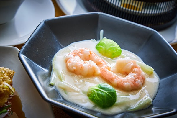 全8品のランチコースはバランスの良い料理の数々を取り揃えました。なかでも目玉の“北京ダック”はじっくりと火を通し香ばしく焼き上げた北京ダックに葱ときゅうりを挟んで特製甜麺醤を合わせ、北京ダックのパリパリとした食感を楽しんでいただける一品です。また、シルクロードは乳加工法が東西に伝わった“ミルクロード”であったとも言われており、ミルクを使った料理も発展していることから“小海老と白菜 クリーム煮”をご用意しました。大粒の海老の食感と寒さを忘れほっこりと温まっていただける季節感あふれる一皿です。そのほか魚介や鶏肉など海の幸や山の幸をバリエーション豊かにご堪能いただけます。
