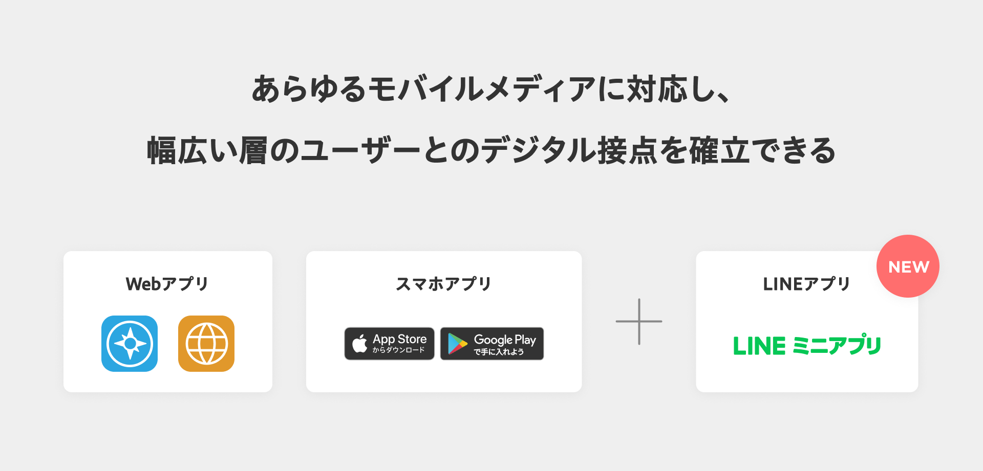 特徴1:スマホアプリ・LINEミニアプリ・Webアプリ、あらゆるUIに対応