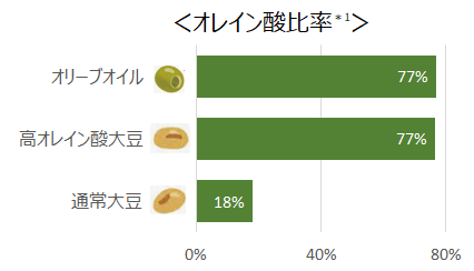 ▶オリーブオイルの注目成分 「オレイン酸」(※2) が通常大豆の約4倍(※1)