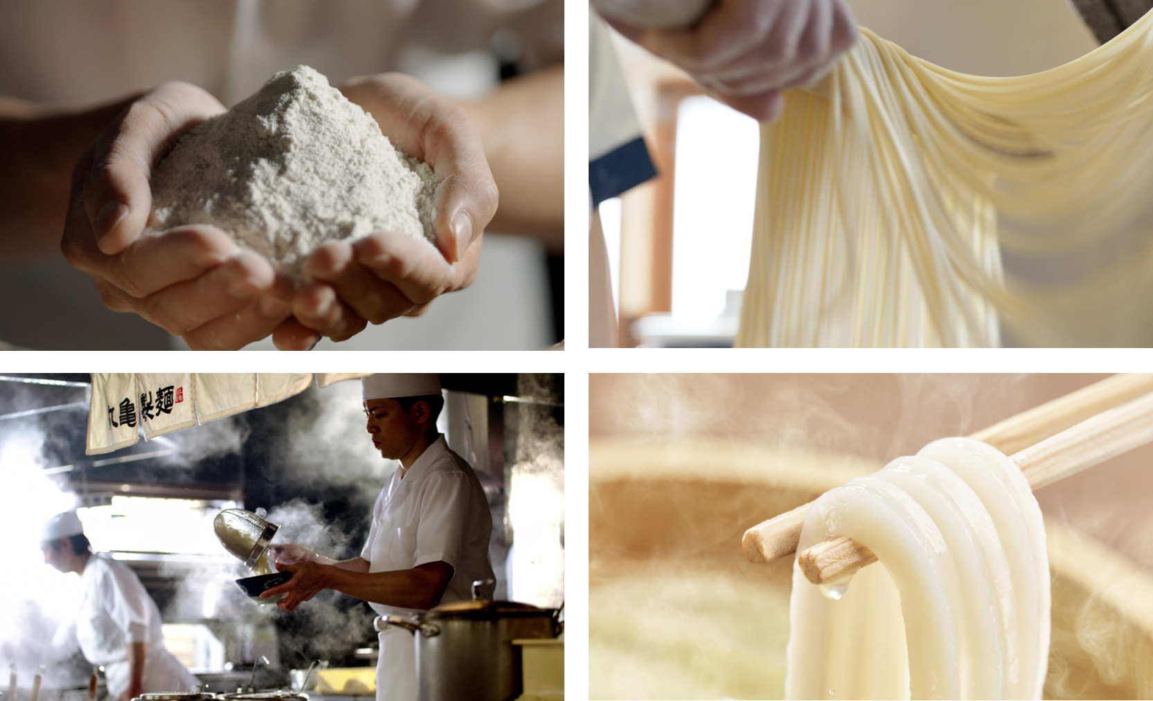 「ここのうどんは、生きている」をブランドメッセージに掲げ、日々、食の感動体験を追求し手づくりの「おいしいうどん」をお客さまに提供しています。徹底的に鮮度にこだわり、国内800を超えるすべての店で、一軒一軒、職人が手間を惜しまず「おいしさ」を日々つくり続けています。