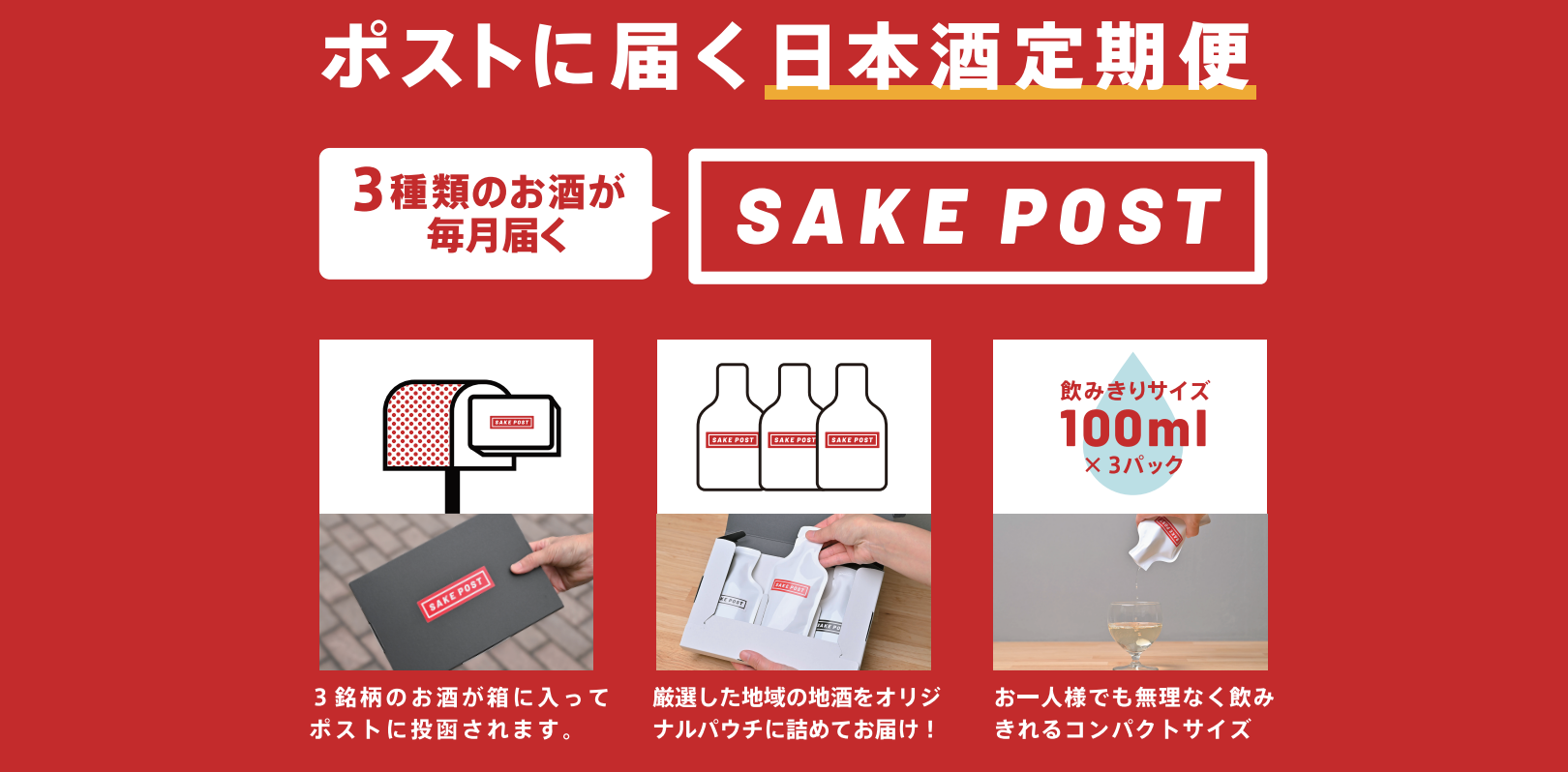 今回のキャンペーンでプレゼントする日本酒は、ポストに届く日本酒定期便「SAKEPOST」のサービス内にて展開している日本酒をお届けします。