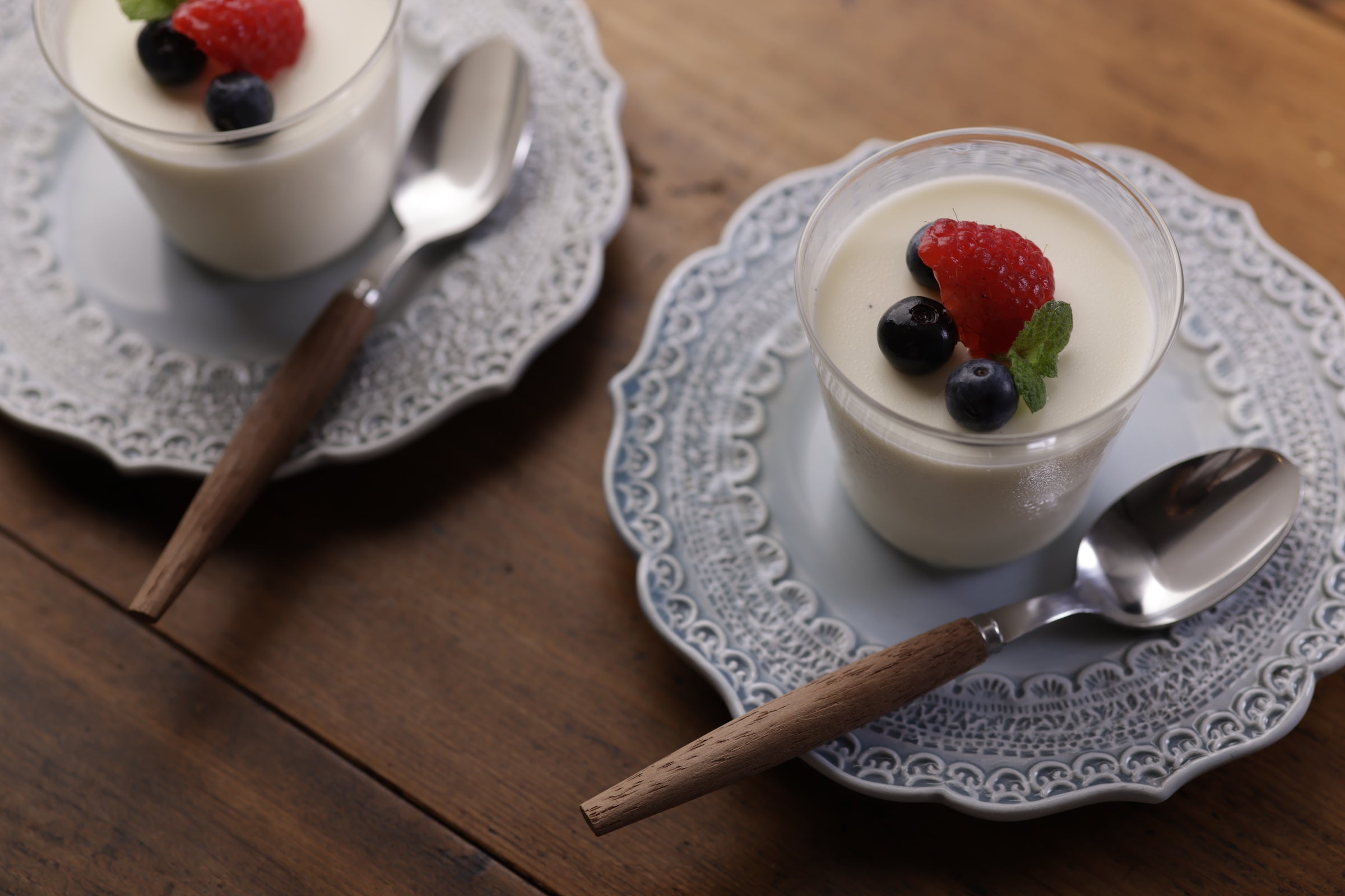 最後はやっぱり、いちごを使った可愛らしいビジュアルで、クリスマスディナーを締めたいもの。パンナコッタはイタリア北西部・ピエモンテ州のドルチェで「生クリームを煮る」という意味。ゼラチンを少なめにして作り、フルフルとした食感を楽しみます。