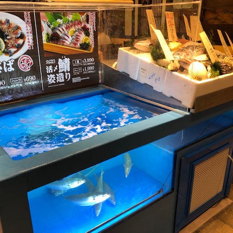 当店自慢の生簀(いけす)で泳いでいる鯖(さば)も注目のポイントです!