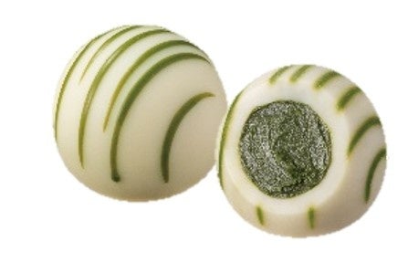 旨味と渋みのバランスが絶妙な抹茶「風」とアーモンドパウダーが香ばしい、ベルギー産ホワイトチョコレートのガナッシュを、ベルギー産ミルクチョコレートで包みました。抹茶「風」とアーモンドが互いの豊かな香りを引き立てます。