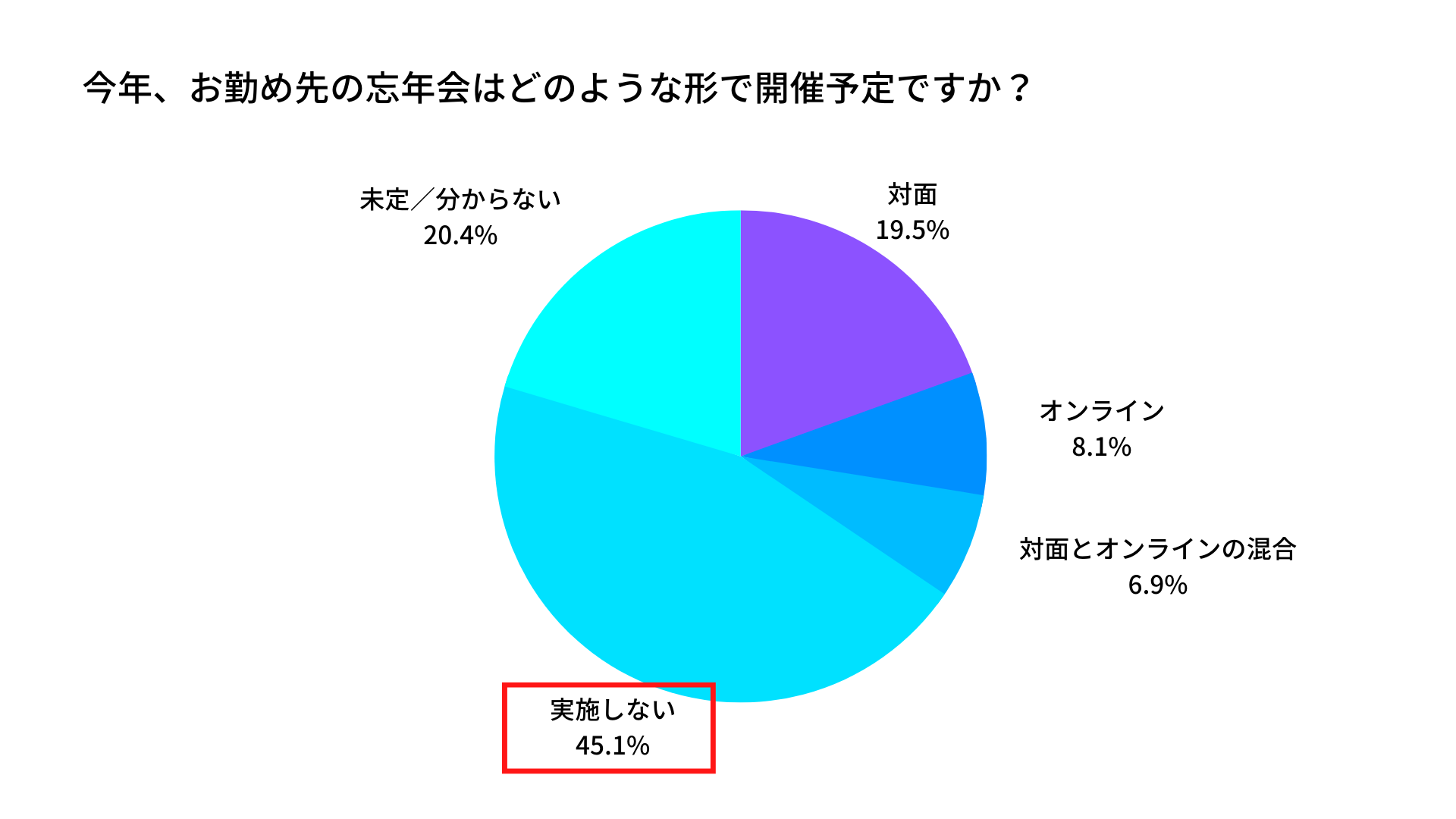 - 2022年、職場の忘年会を実施しないことが決まっているのは45.1%