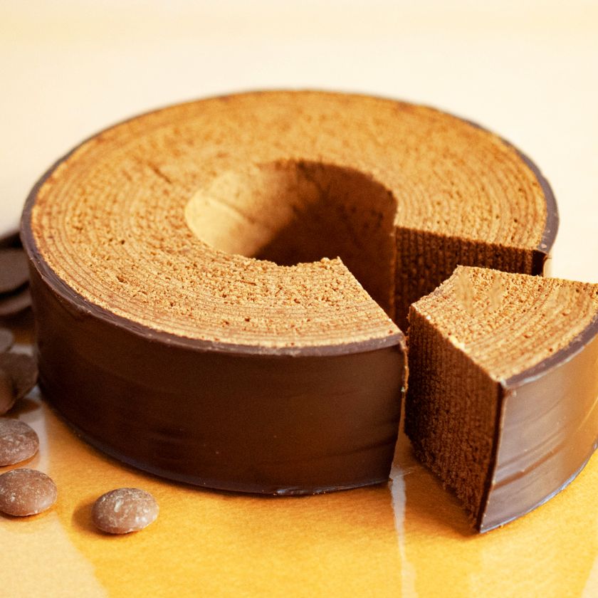 ふんわり食感が自慢のバウムクーヘンと、濃厚チョコレートの深い味わいをお楽しみください。