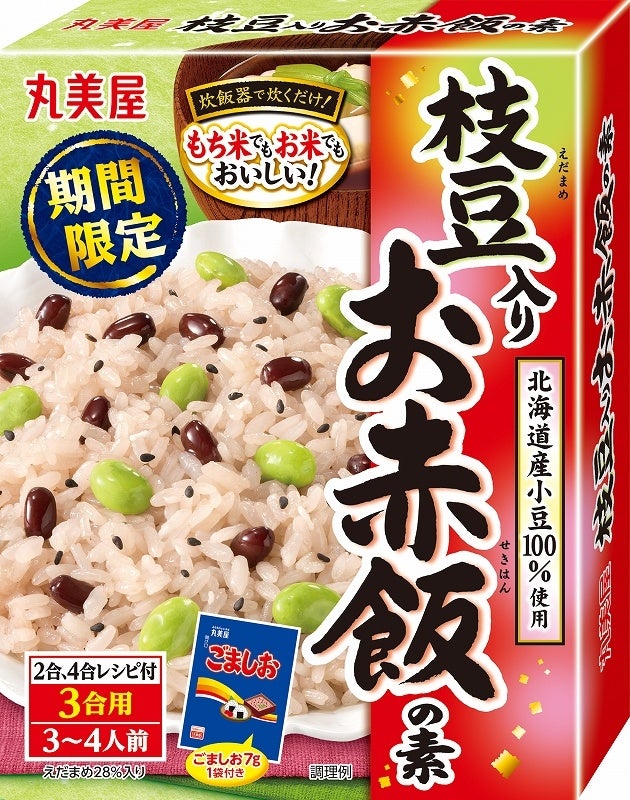 のよい枝豆を組み合わせた、見た目も華やかなお赤飯の素です。