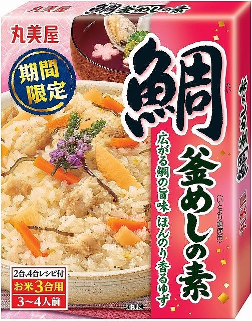 丸美屋食品工業株式会社(本社:東京都杉並区、社長:阿部豊太郎)は、旬の素材を使用した「期間限定 筍釜めしの素」「期間限定 鯛釜めしの素」「期間限定 はまぐり釜めしの素」「期間限定 枝豆入りお赤飯の素」を、2023年1月12日(木)から9月30日(土)までの期間限定で発売いたします。「季節感」「プチ贅沢感」「ハレ感」を訴求し、需要期を迎える市場を盛り上げます。