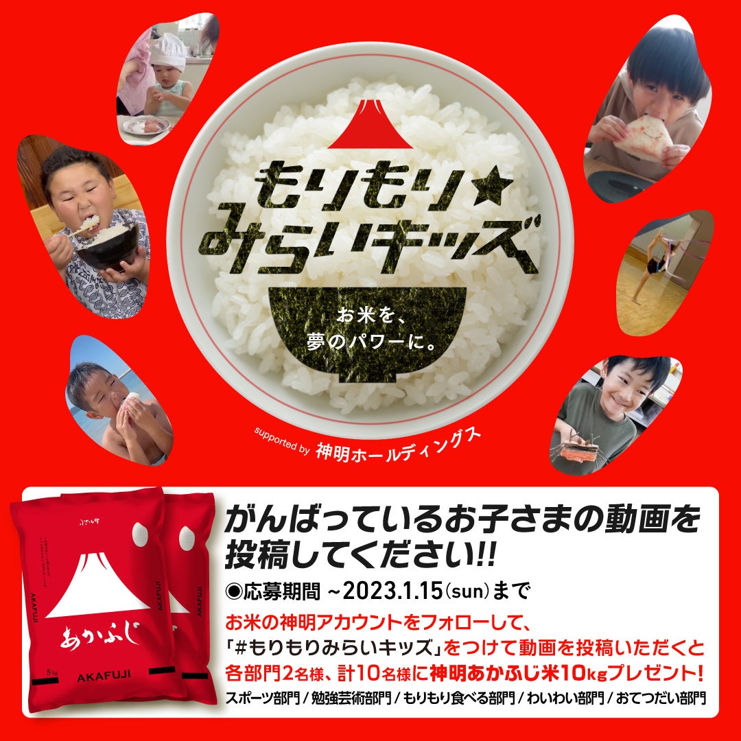今回で第4回目を迎える「もりもり★みらいキッズキャンペーン」は2022年12月15日から応募を開始しました。お子さまのがんばる様子をSNSに投稿、抽選で「あかふじ米」が当たる!