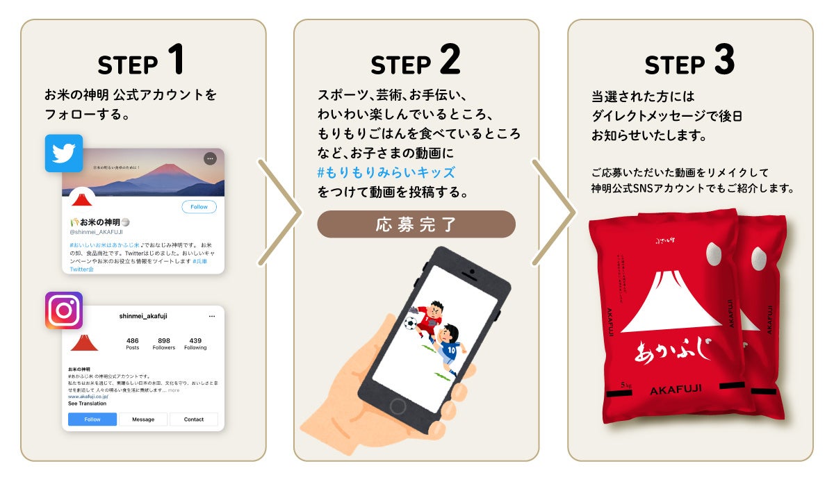 今回で第4回目を迎える「もりもり★みらいキッズキャンペーン」は2022年12月15日から応募を開始しました。お子さまのがんばる様子をSNSに投稿、抽選で「あかふじ米」が当たる!