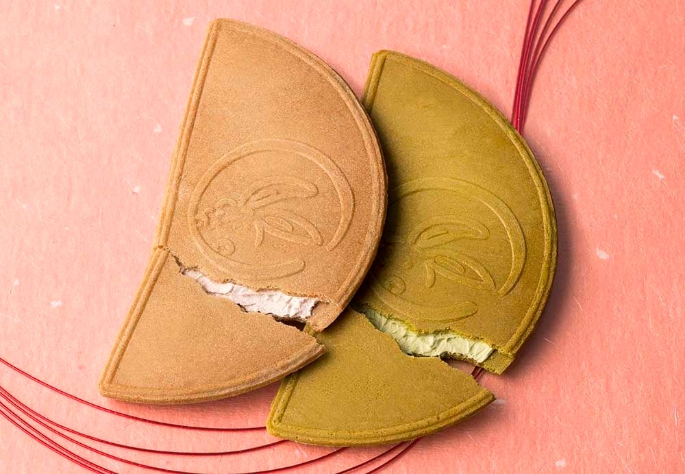 月うさぎがひょっこり顔を出す半月型ゴーフレットに、小倉風味・抹茶風味のクリームをたっぷりとサンド。香ばしく焼き上げた生地をパリンッとかじれば、クリームがふわっととろける“パリふわゴーフレット”です。『鎌倉半月』ならではの無類の香ばしさは、ザクザク頬張るのが楽しくてやみつきになること間違いなし。