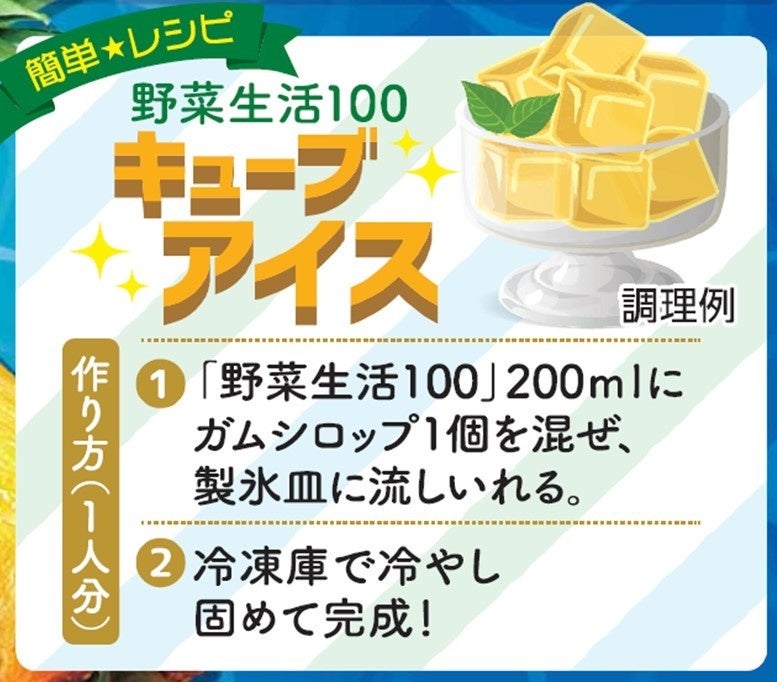 ゴールデンパインの芳醇な甘さとキウイの甘酸っぱい味わいを楽しめます。本品を使用した簡単アレンジで、ガムシロップを入れて冷凍庫で冷やし固める「アイスキューブ」をおすすめしています。