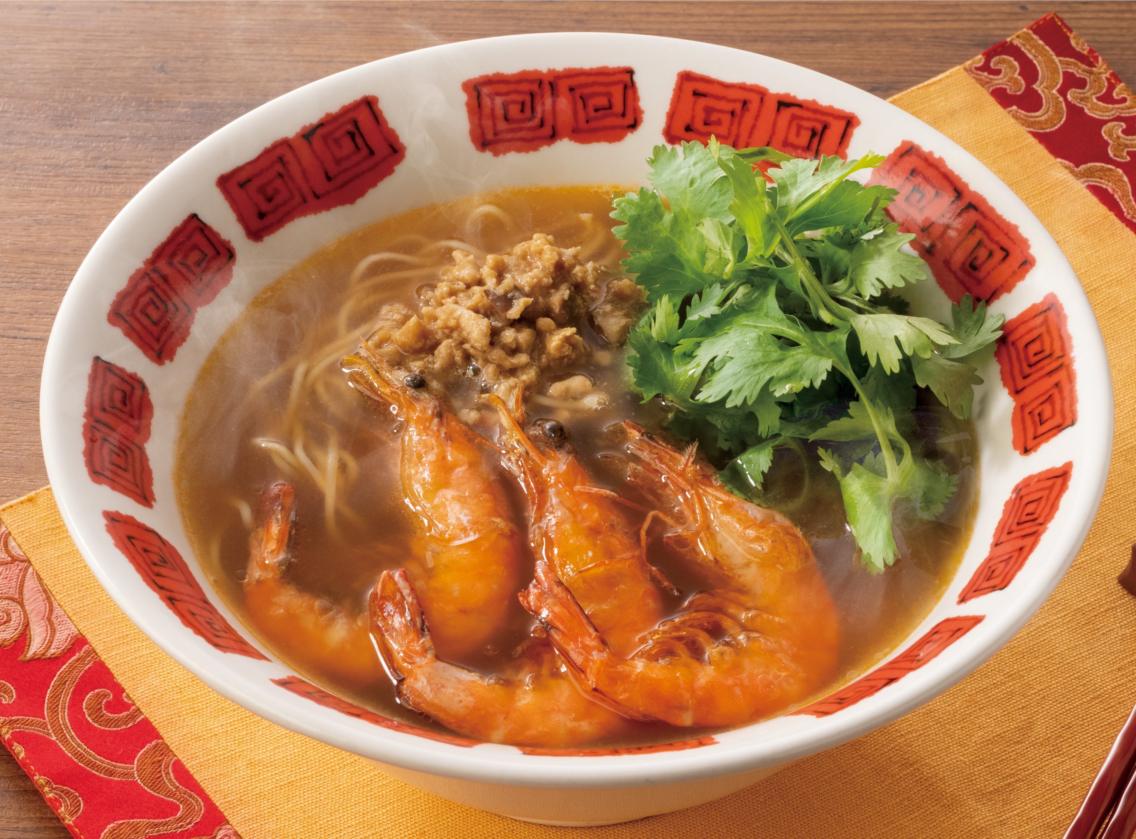 干し海老の出汁をベースに、甲殻類の甘味とコクが堪能できる塩スープと、鶏そぼろ肉との相性が抜群の一杯。パクチーと一緒に召し上がることで、さらにさっぱりとしたエスニックな味わいをお楽しみいただけます。