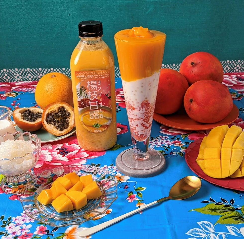 楊枝甘露(ヨンジーガムロ)は、香港で生まれたマンゴースイーツです。香港では、マンゴーの果肉だけではなくグレープフルーツや小さなタピオカと一緒に食され、コンデンスミルクやココナッツミルクをかけて食後のデザートとしてレストランなどで食べられているポピュラーなスイーツです。楊枝甘露が香港を飛び出して、台湾で人気に火がついたのが2021年春頃。台湾中にあるドリンクスタンドで楊枝甘露のアレンジドリンクが販売され、大人気となりました。フルッタフルッタでは、楊枝甘露をいよいよ日本で本格販売開始。日本でもアジア旅行気分を味わうことができるスイーツドリンクです。