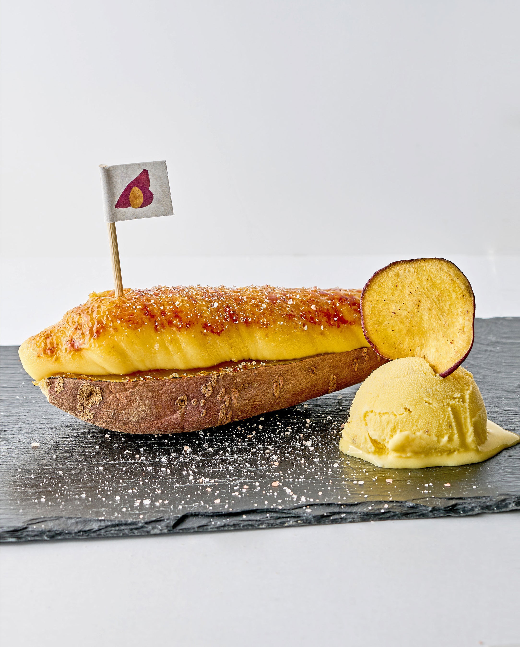甘味と塩味のバランスが絶妙な、“をかしな”芋ブリュレです。