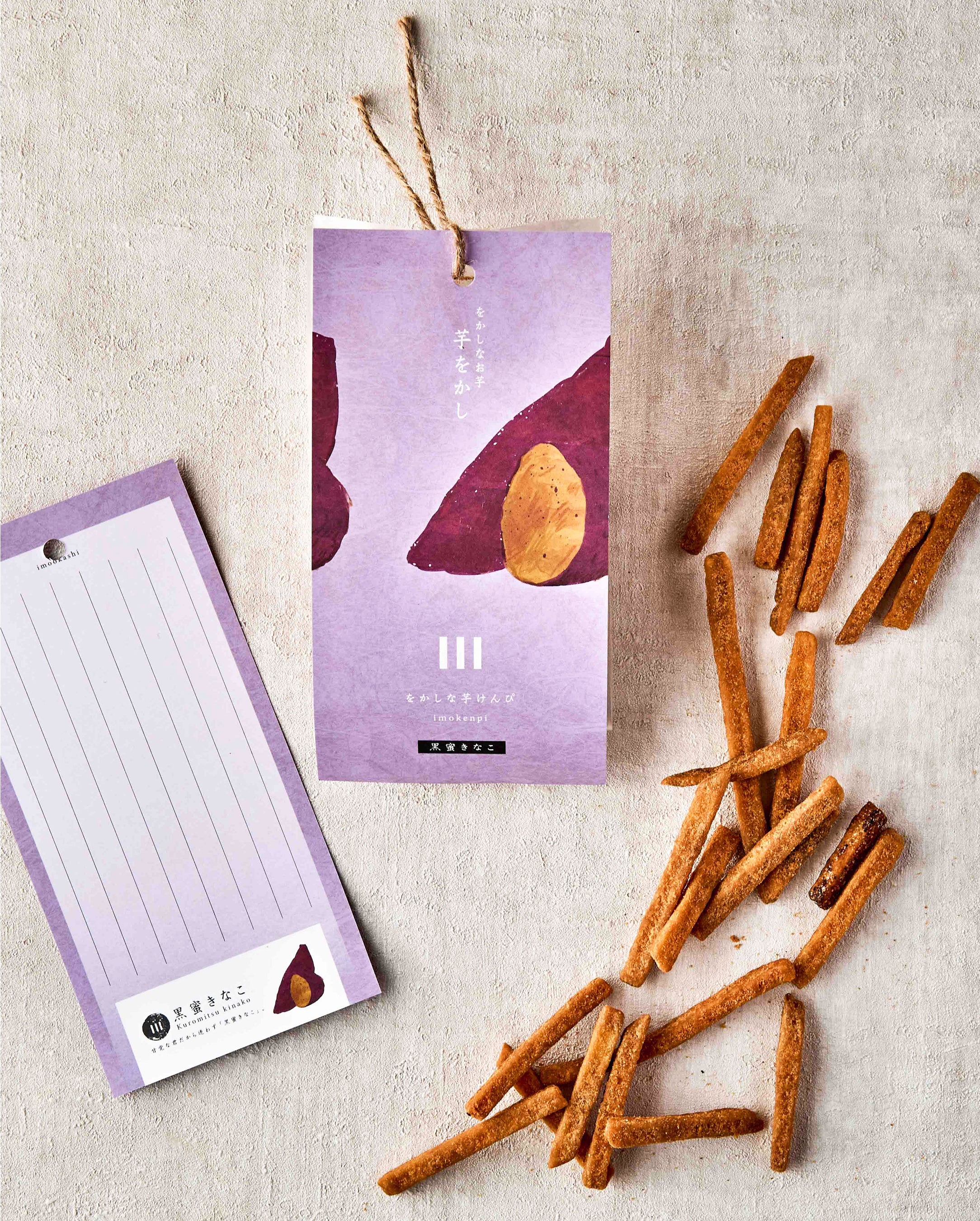 カリカリの芋けんぴと相性抜群の“をかしな”3種類のフレーバーをご用意しました。