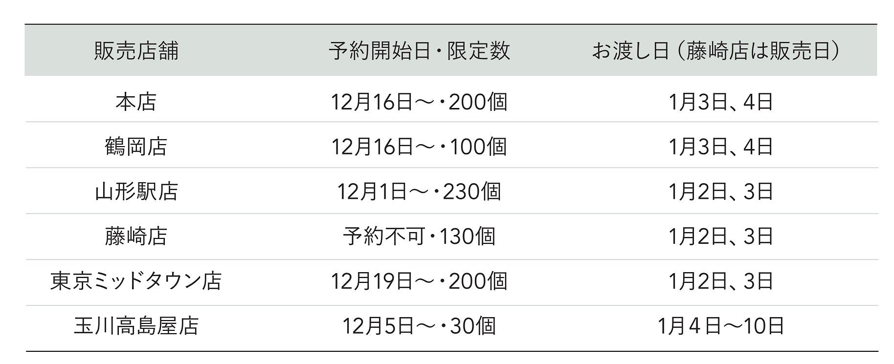 ※藤崎店は予約不可、販売日店頭にて先着順で販売します。
