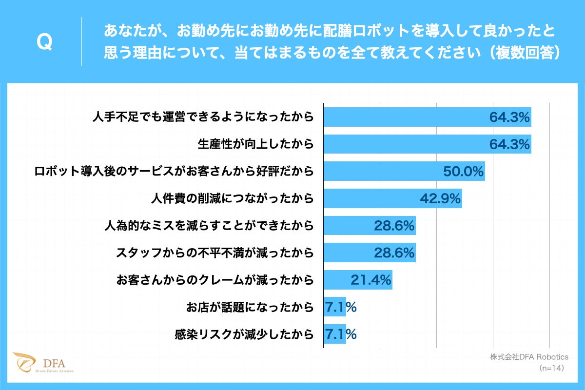 具体的には、「人手不足でも運営できるようになった」(64.3%)「生産性が向上した」(64.3%)などのメリットを実感していることが明らかとなりました。