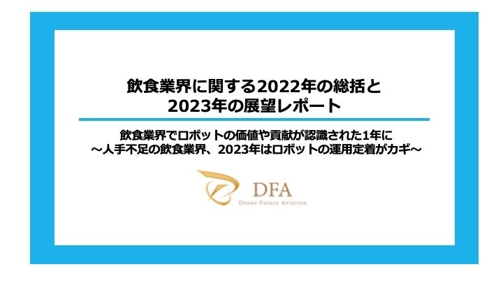 飲食店DXを推進するロボティクスソリューションカンパニーである株式会社DFA Robotics(東京都渋谷区、代表取締役 波多野 昌昭)は、飲食店の配膳ロボットおよびアルバイトスタッフについてアンケート調査を飲食店店長105名に行い、その結果と共に、飲食業界の抱える課題とアルバイト探しのトレンド、またサービスロボット活用について「飲食業界に関する2022年の総括と2023年の展望レポート」を発表したことをお知らせいたします。