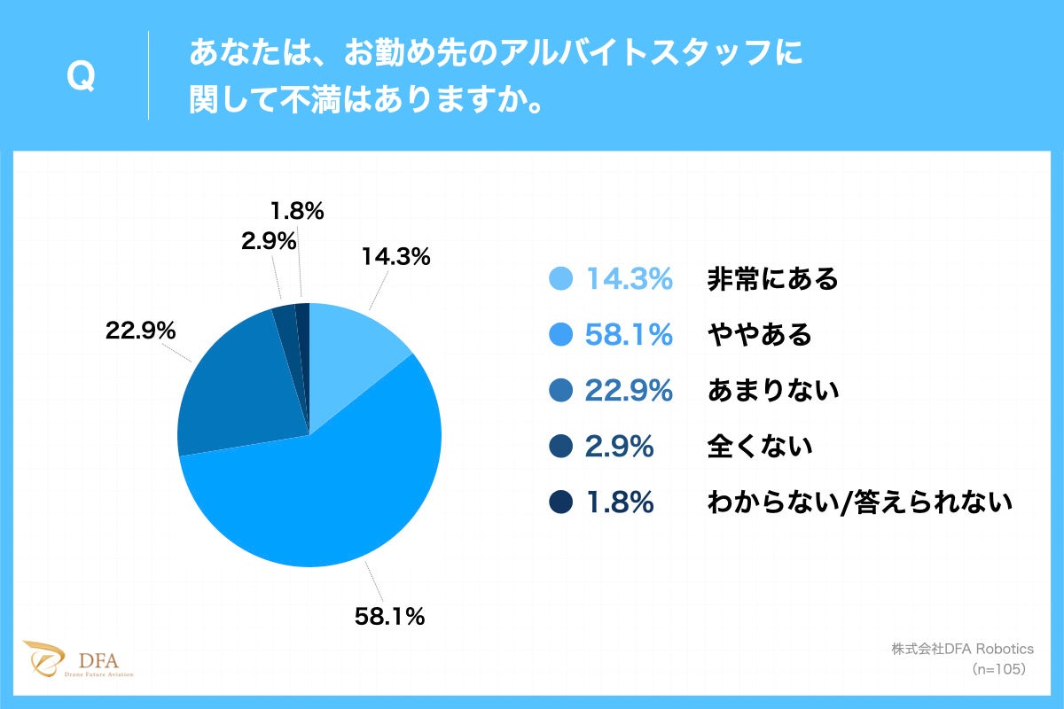 また同調査では、アルバイトスタッフを複数名マネジメントしている飲食店店長の7割以上がアルバイトスタッフに対して「不満がある」と回答しました。