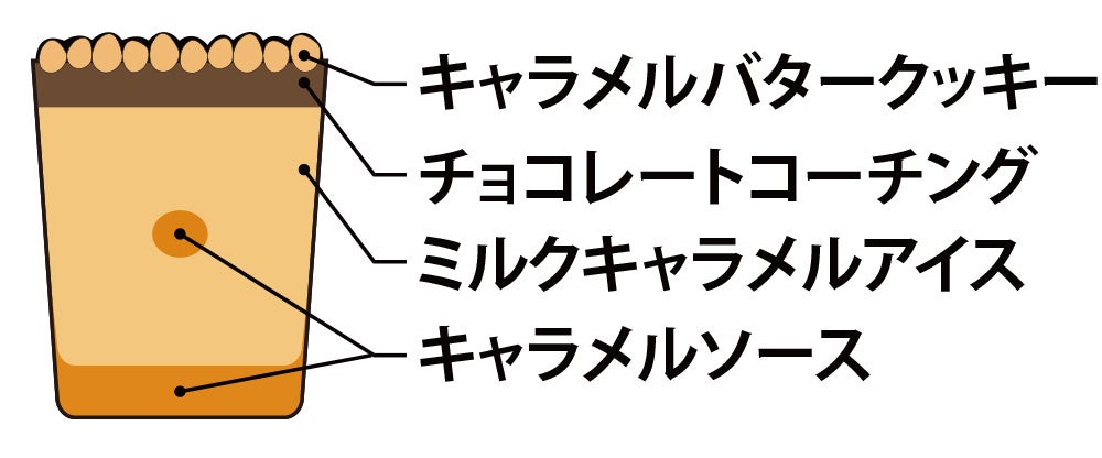 バターを配合したキャラメルクッキーとこだわりのキャラメルアイス、とろとろ食感のキャラメルソースが特長。