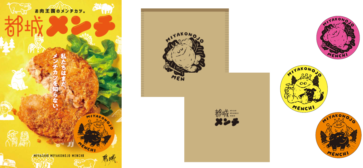 都城メンチの背景や店舗紹介など、魅力が詰まった「ブランドブック」を発行。揚げたての“都城メンチ”を包む「メンチ袋」や、店舗を巡って集めたくなるような可愛らしい「ステッカー」なども作成しました。今回のイラストは都城市出身のオカタオカさんが担当しています。