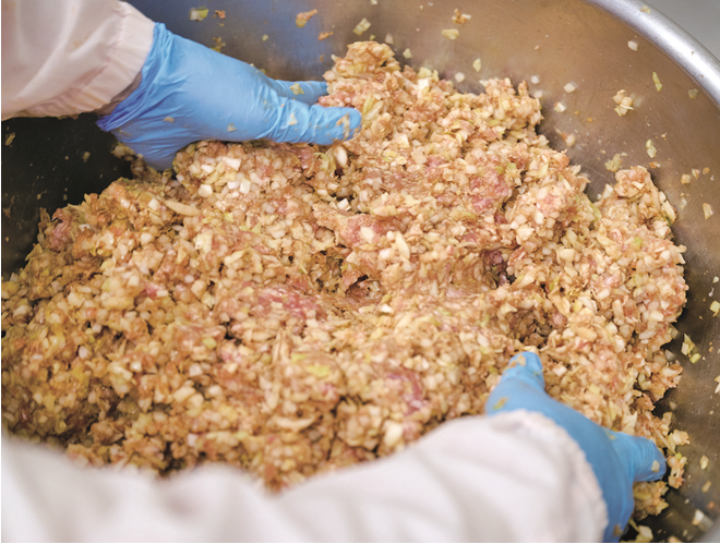都城のメンチカツは、丹精込めて育てた豚を、どの部位も余すことなく食べてもらいたいとの思いから生まれたもの。畜産業の盛んな都城市では、事業者ごとに様々なブランドポークが飼育・生産されてきた歴史があり、直売所ではそれぞれの特徴を活かしたメンチカツが販売されてきました。地元では、当たり前のように、ごはんのおかずやおやつとして愛されてきましたが、地域外ではあまり知られていません。都城市と連携を深めてきた㈱博多大丸九州探検隊は、このメンチカツに着目。行政の持つ地域の愛すべき産品や地域の事業者との繋がり、民間である百貨店の博多大丸の持つバイイング力や編集力といった、双方の資源を有効に活用した官民連携によるプロジェクトで、都城市の新たな地域産品“都城メンチ”が誕生しました。