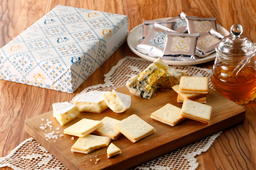 北海道産牛乳とフランス産ゲランドの塩を使った生地に、カマンベールチーズのチョコレートをサンドしたクッキーです。