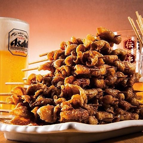 伝串は、独自の波型串打ちにより“パリもち食感”を実現。調理工程で、余分な脂を落とした鶏皮はコラーゲンの宝庫。表面はパリパリ、中はモチモチとなり、何本でも美味しく食べられます。タレには万病に効くといわれる高麗人参を使用。甘口で美味しい自家製高麗人参タレと伝串の相性抜群です。