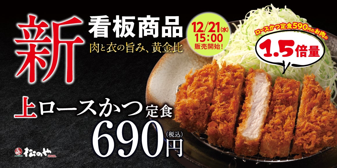 松のや自慢の看板メニュー「ロースかつ」が1.5倍にボリュームアップ、定番メニューとして登場します。