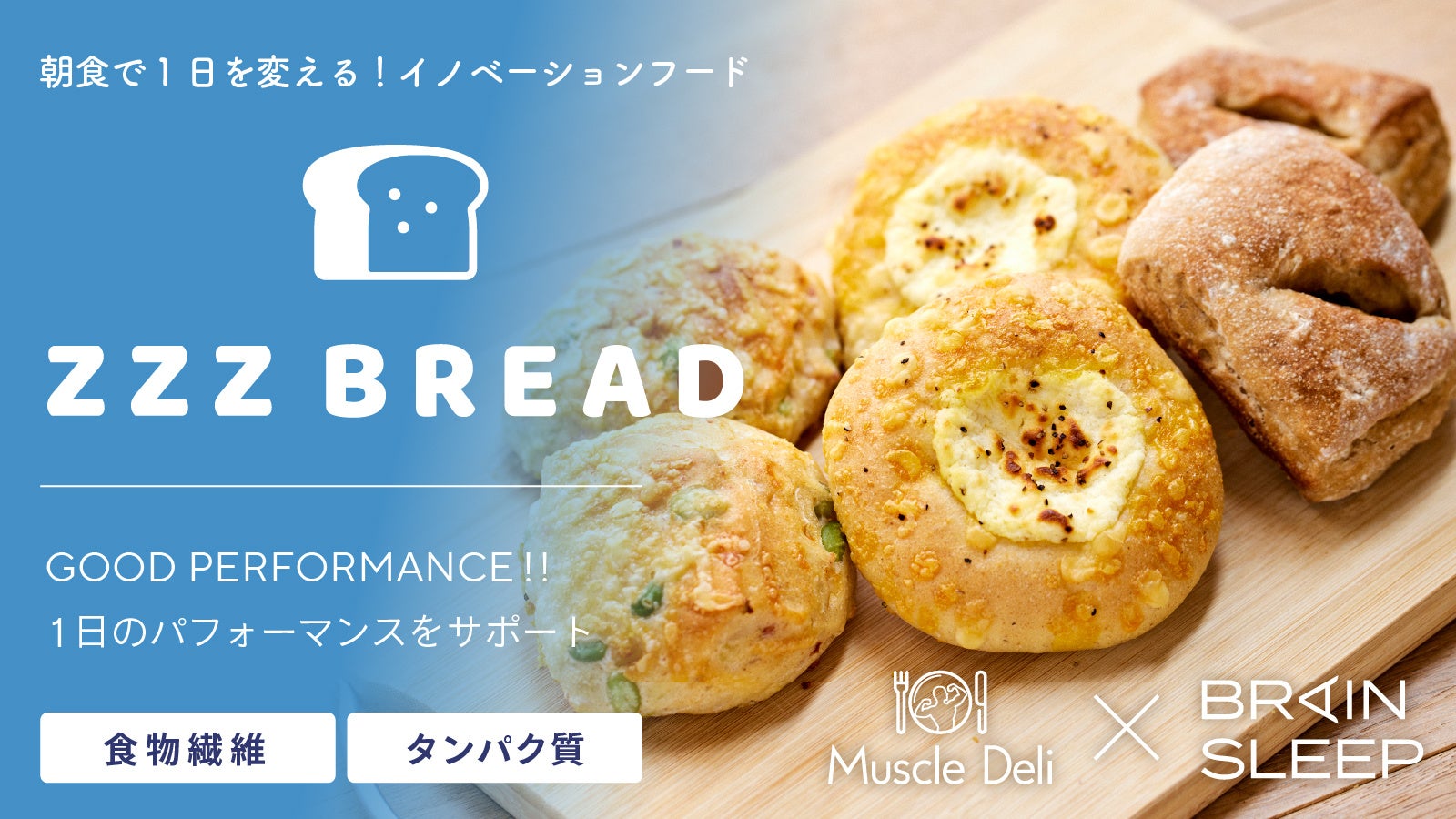 マッスルデリでは、「カラダとココロを栄養で満たし、あなたの幸せをサポートする」というミッションを掲げています。この度、「最高の睡眠で、最幸の人生を」をミッションに掲げるブレインスリープがMakuakeで行なっている「睡眠共創」プロジェクトに共感し、朝食パン「ZZZ BREAD(ジー ブレッド)」を開発いたしました。