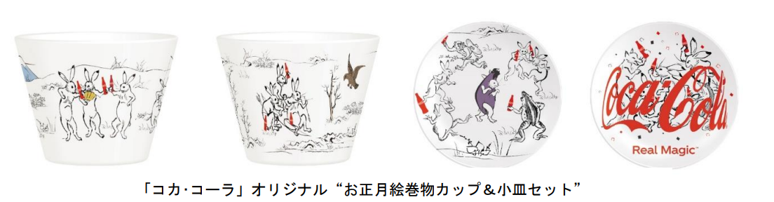 「コカ・コーラ」オリジナル“お正月絵巻物カップ&小皿セット”(カップ2個+小皿2枚セット、2023名様)