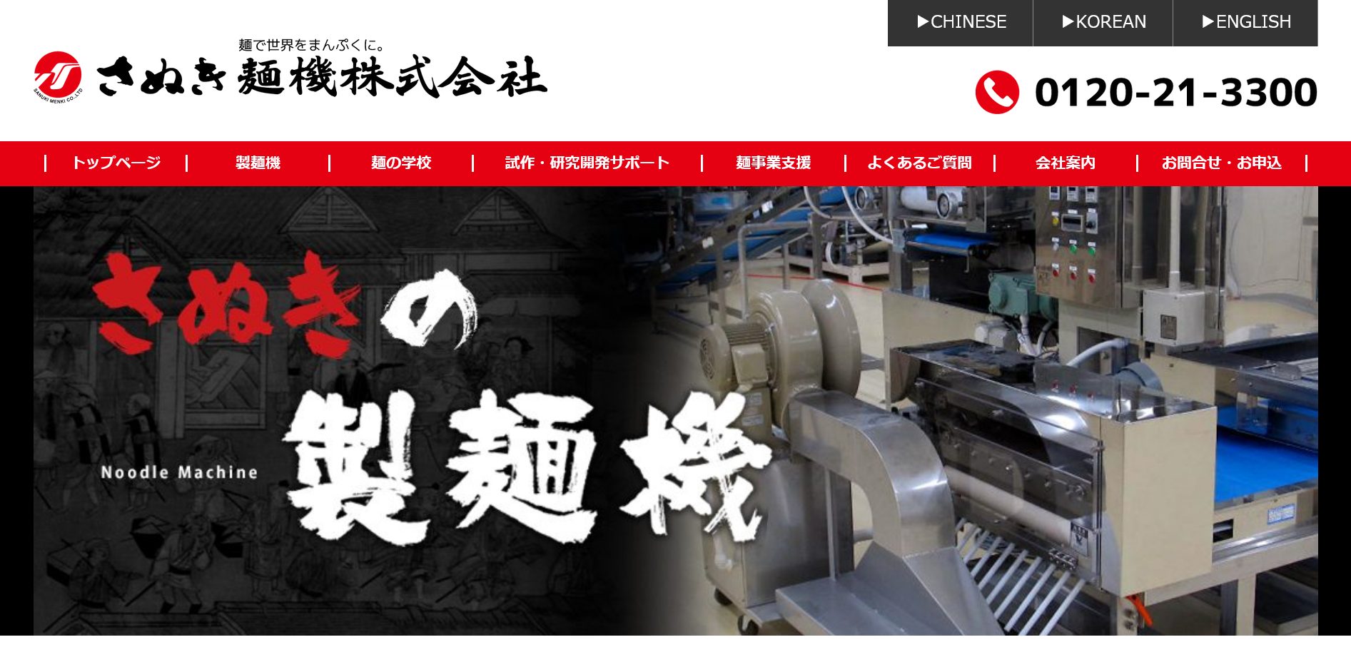 「うどん県」として知られる香川県に本拠を構える創業1910年の老舗製麺機メーカーです。国内23カ所・世界15カ所に販売サービス網を構築し、世界で躍進しています。専門店、スーパー、コンビニなど多くの企業が同社の製麺機を導入しています。また、「全日本麺総合技術研修センター」として香川県から唯一委託された「讃岐うどん学校」も経営。「ラーメン学校」を併設し、麺に関する全てを学べます。
