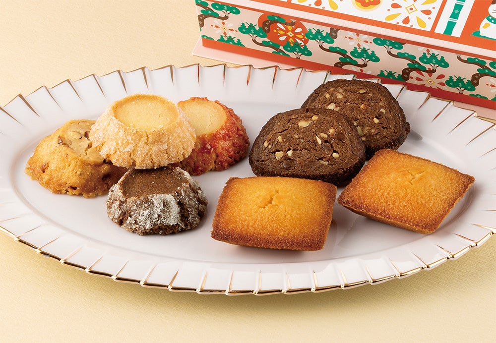 紅白カラーがハイカラキュートなスイーツボックス「ニューイヤー・ステイツ」。松竹梅に、日の出に花火。おめでたいものがてんこ盛りの華やかなデザインです。さらにはたくさんの招き猫たちも集まって“ハッピーニューイニャー!”みんなで2023年の訪れをお祝いしています。幸福&口福をたっぷりと詰め込んだ「ニューイヤー・ステイツ」でバターの香りに包まれる“バターハッピネス”な2023年をお迎えください。