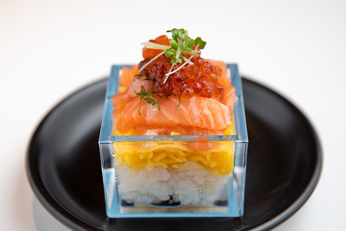サーモンといくらの枡寿司 〜エシャロットソース〜