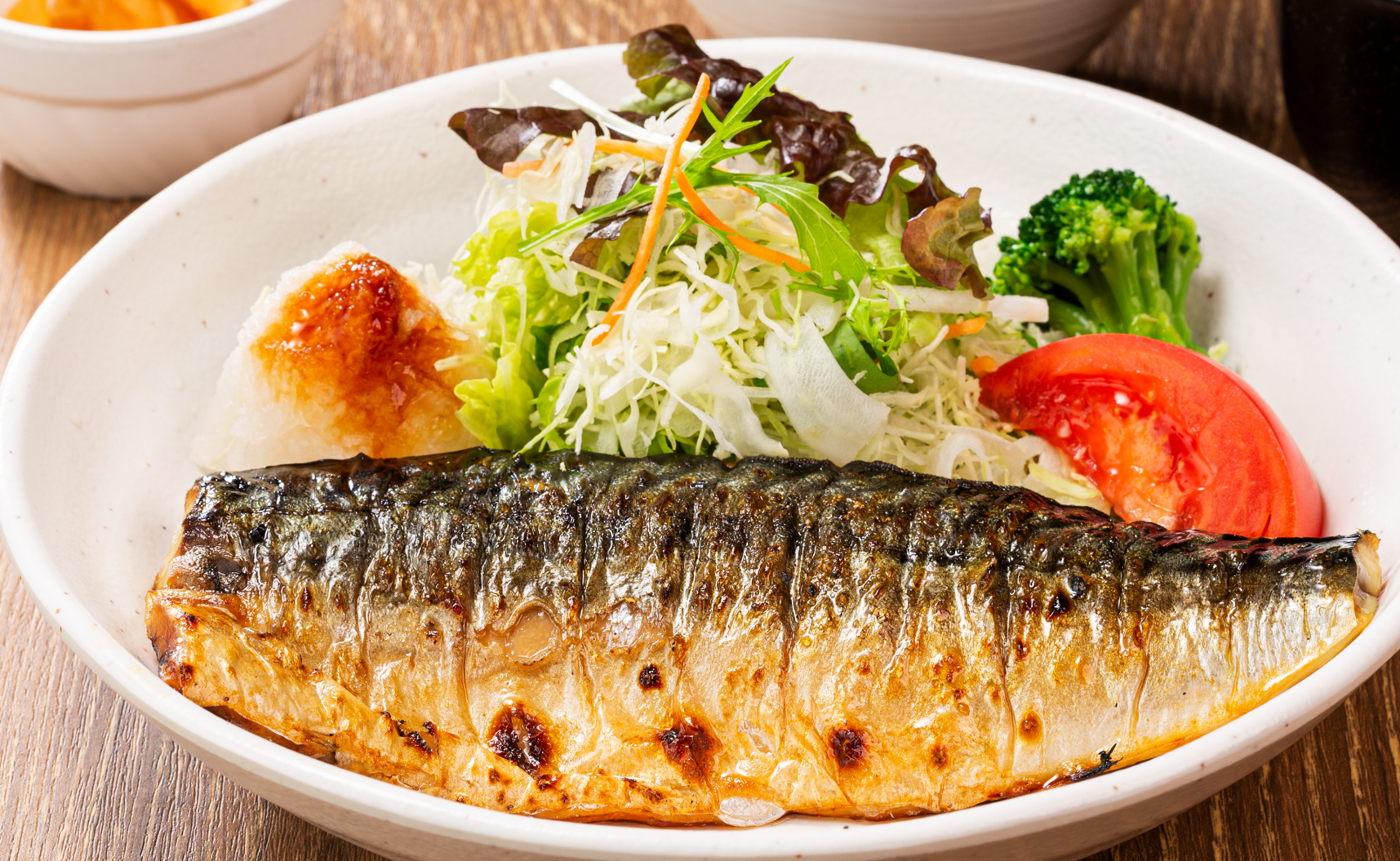 脂ののった鯖を、直火でじっくり焼いた魚定食。ふっくら肉厚の鯖は大根おろしでさっぱりとお召し上がりいただけます。
